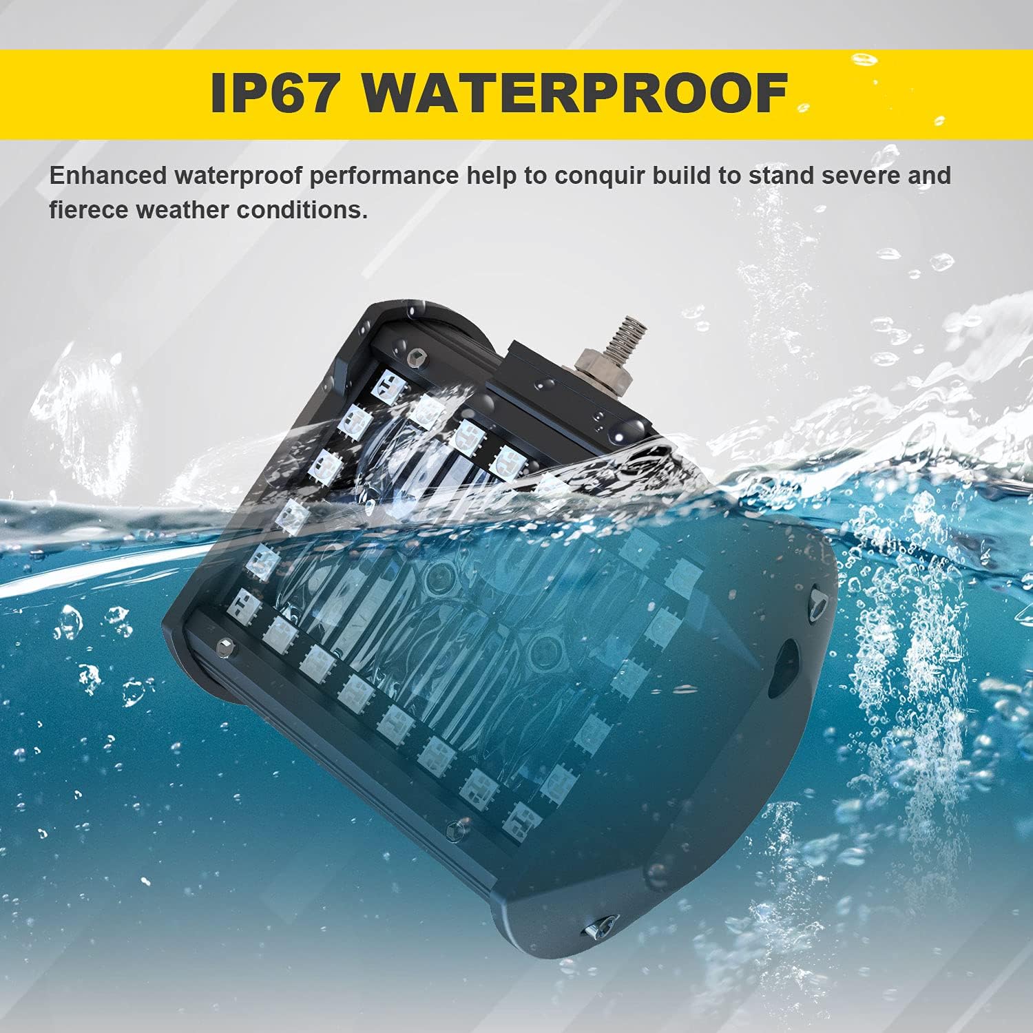3.【High Performance】IP67 protection level RGB led off road lights has excellent waterproof, dustproof and shockproof performance. RGB LED light bar with adjustable mounting bracket can be adjusted to about 45°, The die-cast aluminum housing, stainless steel bracket can withstand harsh outdoor conditions.