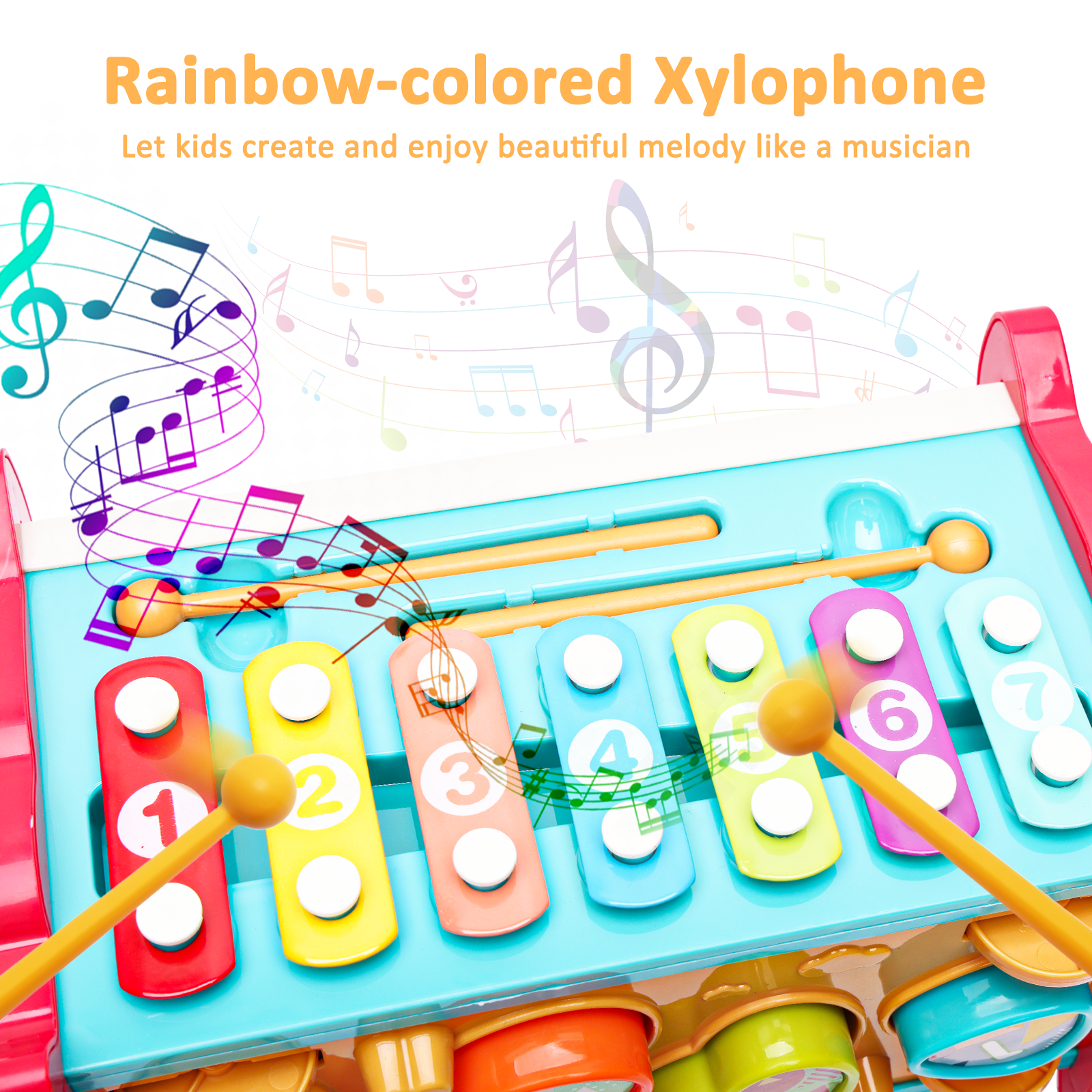 CAUTUM 8-in-1 toddler toys combine educational hammering toys, sensory fishing games, and a xylophone. Made from high-quality plastic with a smooth surface, these toys are safe for children aged 1 to 3 years. Inspired by Montessori methods, they feature bright colors and fun activities that help improve hand-eye coordination and logic skills. Kids can enjoy games like whack-a-mole and fishing, creating special moments with their parents.