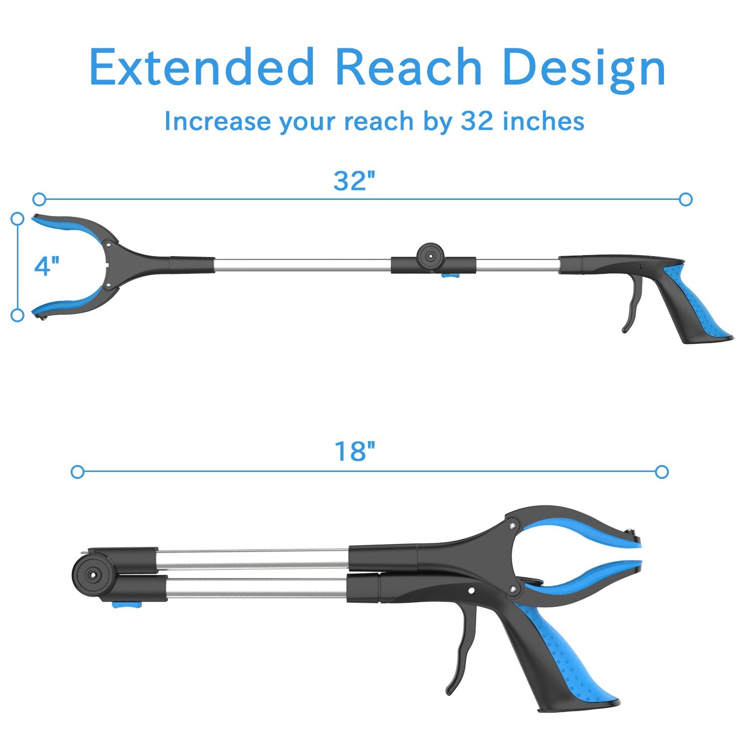 ▲ EASY TO USE - Unlike other grabbers, the 32" reacher grabber pickup tool is designed to keep the item's center of gravity close to you, making it easier and more stable to use. Our reacher grabber makes picking up items effortless. Whether it's coins or trash, simply pull the trigger and start working.