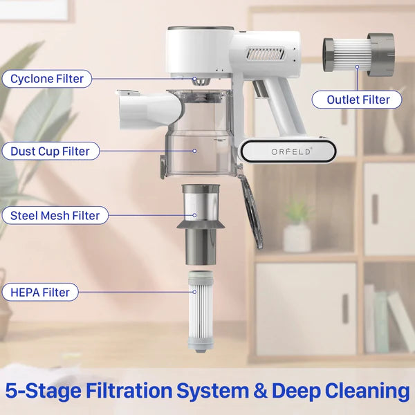 ORFELD Cordless Vacuum Cleaner, 20000Pa Stick Vacuum 2 in 1, Up to 50 Mins Runtime, with Dual Digital Motor for Deep Clean Whole House