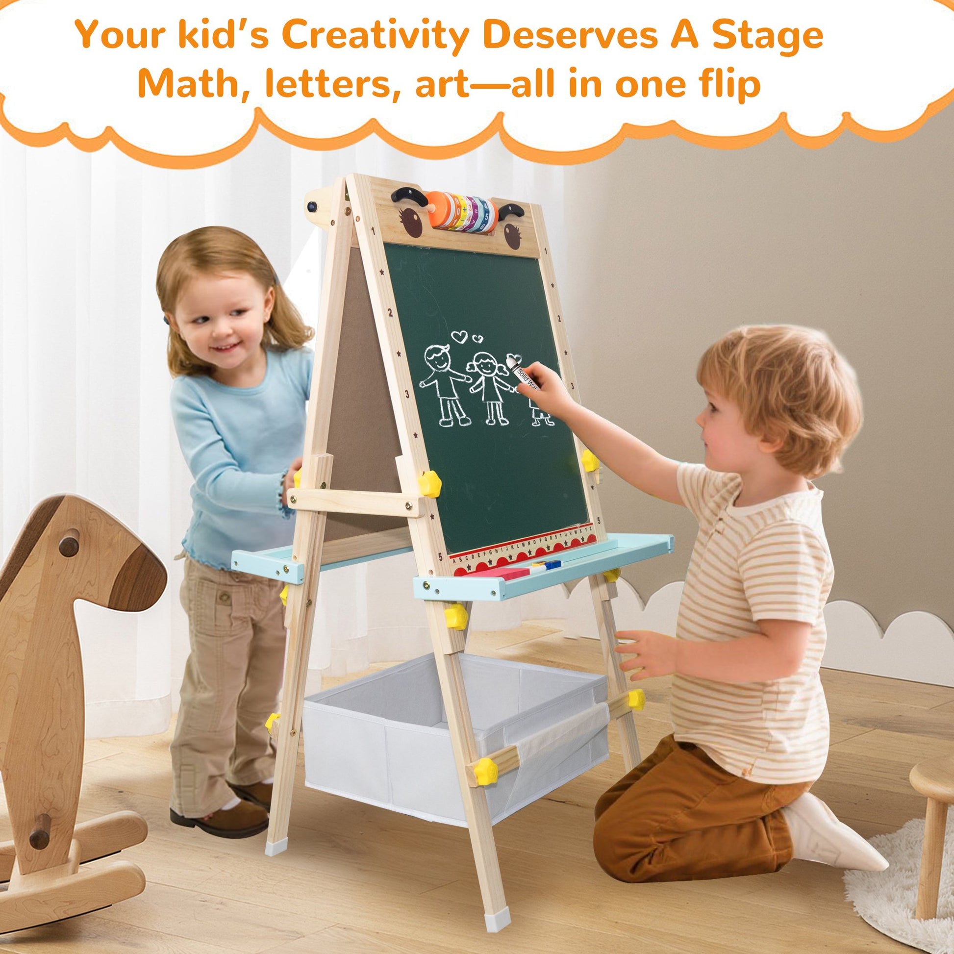 Double - Delight Design: One side for wild and wonderful drawings with 8 pens, and the other side for letter and number fun! Multiple kids can join the creative party at once.