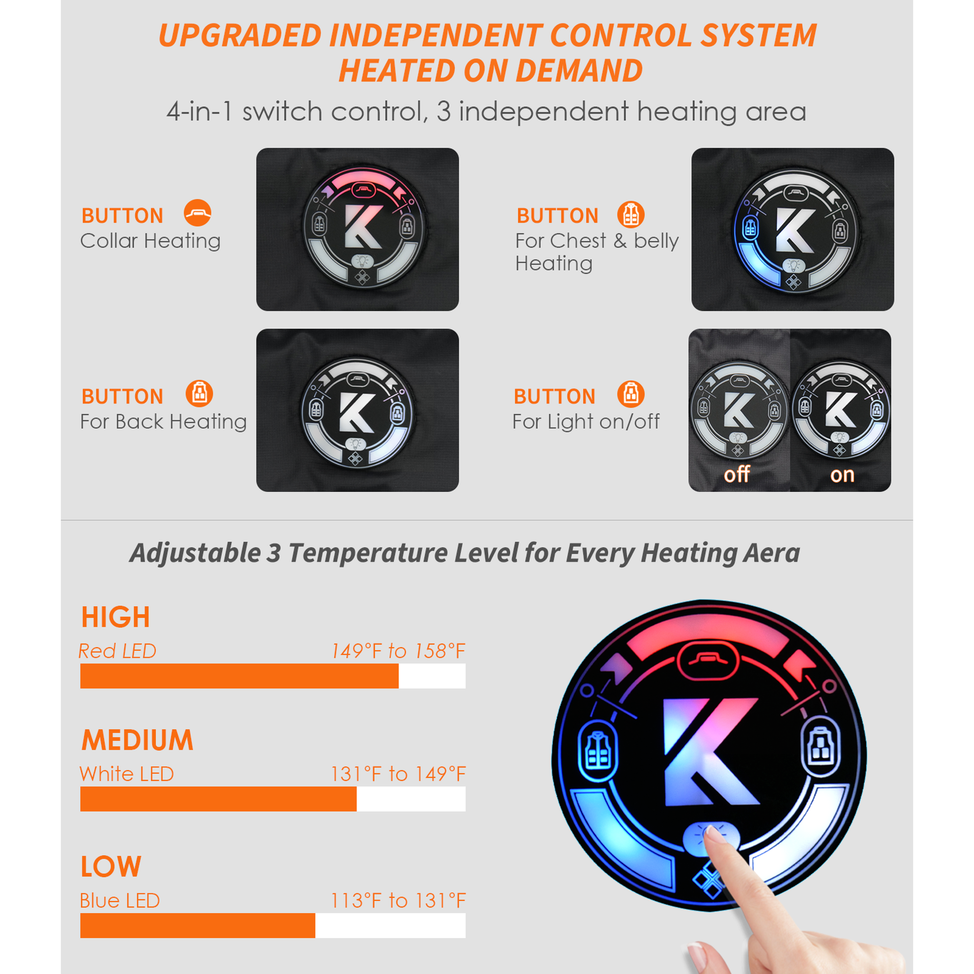 - Intelligent Heating Zones: Equipped with 8 independent heating zones strategically placed throughout the vest, our Heated Vest ensures efficient and even distribution of warmth, keeping you cozy in targeted areas.